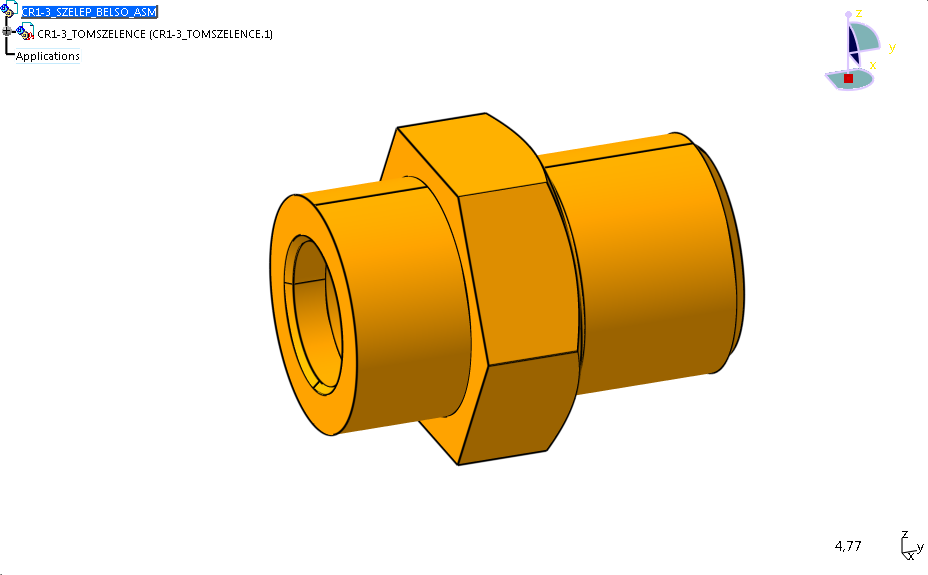 Legyen a beszerelt tömszelence fix! Ehhez használjuk a Fix kényszert. A parancsikonjára való kattintás után vagy a fában, vagy a modelltérben ki választani a rögzítendő alkatrészt. Nincsen felugró ablak, onnan tudjuk hogy a parancs aktív, hogy az ikonja narancssárgára változik.